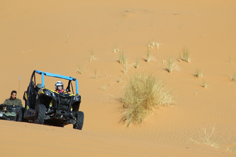 Feeling the need for speed in Sahara desert? Hop into a buggy for a true adventure around Merzouga with locals. Discover the magic of the Erg Chebbi famous desert in a new and fun way. Your guides will tell you all about the route that you're about to embark on, and give you brief instructions on how to drive the buggy.